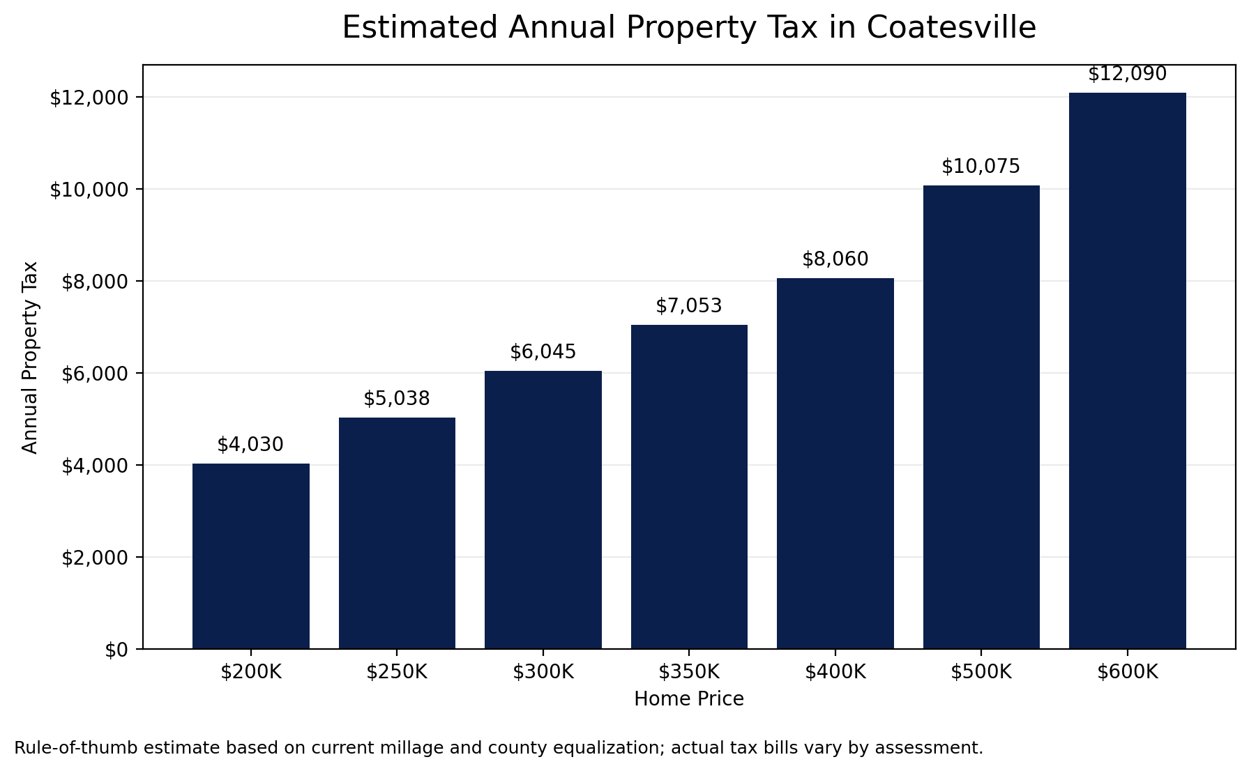 The second issue is the annual tax burden. A house in Coatesville comes with an ongoing cost structure that can feel much heavier than buyers expect once they move past the sale price and start looking at what ownership really costs year after year.